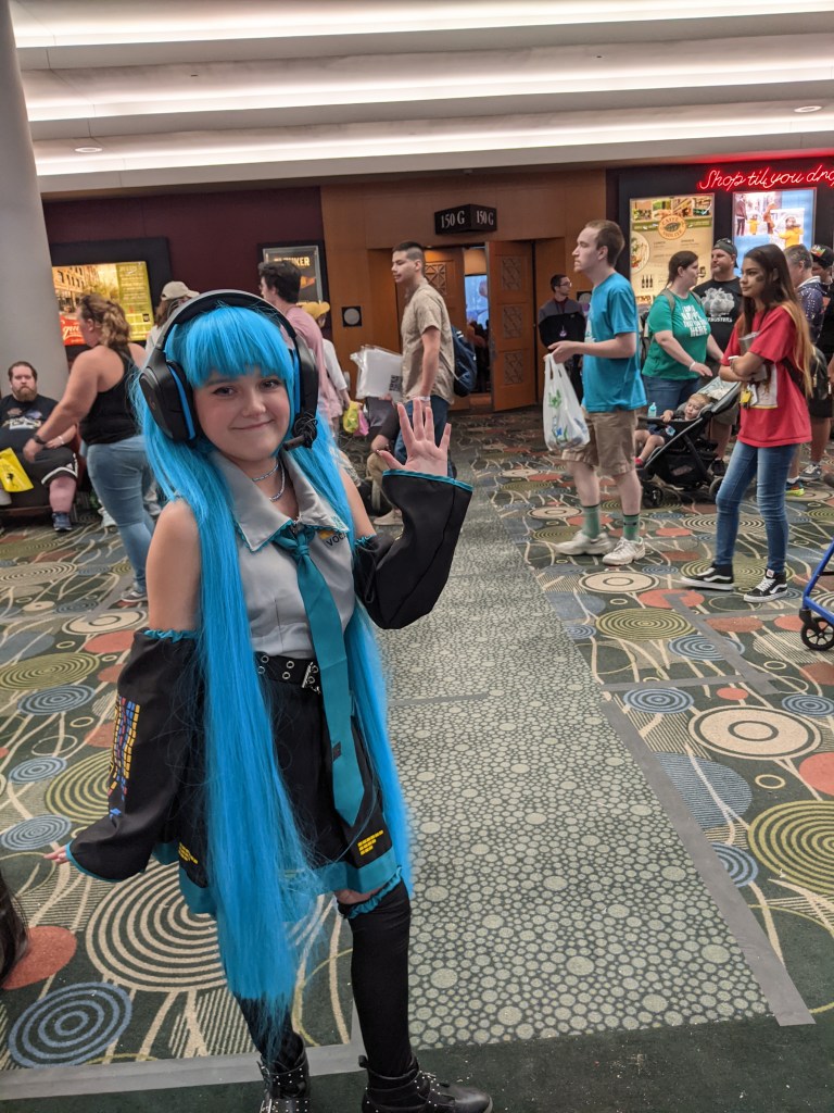 There were actually two distaff Pyramid Heads at this con, but I didn’t realize the second one was different from this one until she was too far away to get a good picture.Vocaloid has some pretty strong character designs. I’d love to see a group costume for them.Helluva Boss continues to represent.There’s almost no piece of either of these costumes that can’t be bought from a regular clothing store, yet they’re very recognizable. I expect they’d work just as well separately as together.